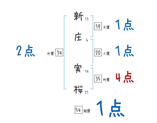 新庄実桜さんの画数の鑑定結果
