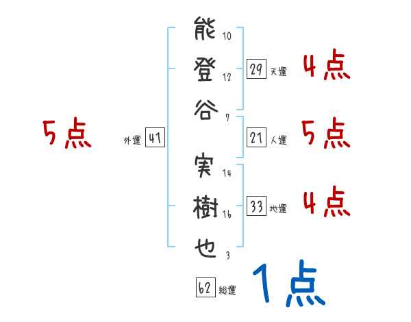 天運![]() | 能登谷実樹也さんの天運は29画の4つ星!完全主義で才能がある。厳格な心の持ち主。 家系が持つ宿命的な運勢を表します。祖先から受け継いだ苗字ですので自分の力が及びません。家柄を象徴します。 |