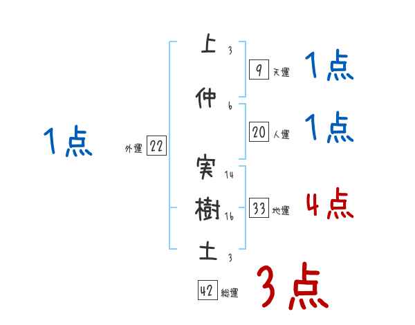 天運![]() | 上仲実樹土さんの天運は9画の1つ星!消極的で才能を発揮することが苦手なことも。周りの意見に耳を傾けましょう。 家系が持つ宿命的な運勢を表します。祖先から受け継いだ苗字ですので自分の力が及びません。家柄を象徴します。 |