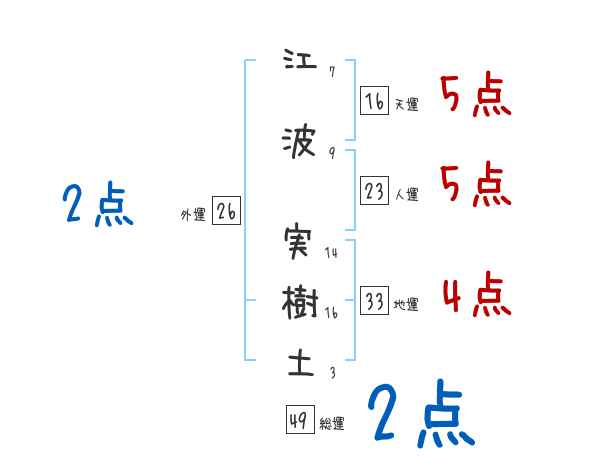 天運![]() | 江波実樹土さんの天運は16画の5つ星!人望が厚く大きく発展する。逆転成功が見える。 家系が持つ宿命的な運勢を表します。祖先から受け継いだ苗字ですので自分の力が及びません。家柄を象徴します。 |