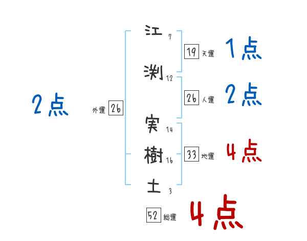 外運![]() | 江渕実樹土さんの外運は26画の2つ星!波瀾万丈かも。信頼できる人を大事にしましょう。 生活面を象徴する運勢です。外部から受ける影響力を表し、結婚運、家庭運や職場、環境への順応性を表します。 |