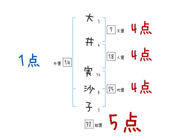 総運![]() | 大井実沙子さんの総運は32画の5つ星!柔軟性があり成功する。チャンスが多く金運が良い。 あなたの人生を表す1番重要な運勢です。生涯を通じて影響する総合運となり、主に50歳以降の晩年期に影響を及ぼします。 |