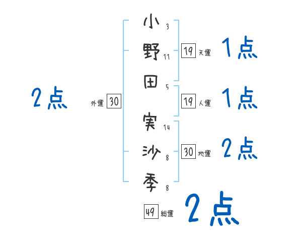 小野田実沙季さんの画数の鑑定結果