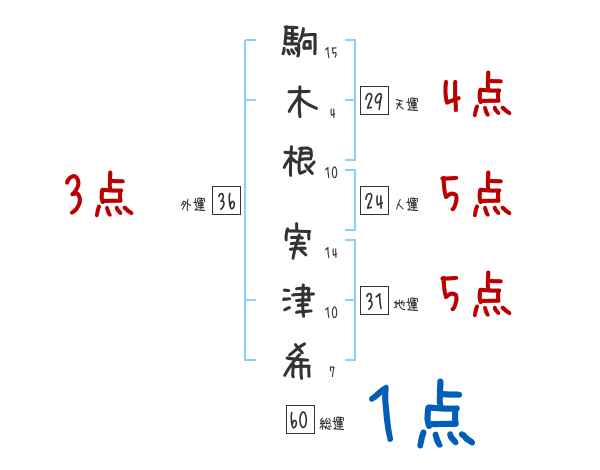天運![]() | 駒木根実津希さんの天運は29画の4つ星!完全主義で才能がある。厳格な心の持ち主。 家系が持つ宿命的な運勢を表します。祖先から受け継いだ苗字ですので自分の力が及びません。家柄を象徴します。 |