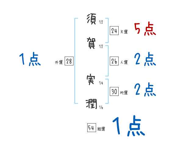 須賀実潤さんの画数の鑑定結果