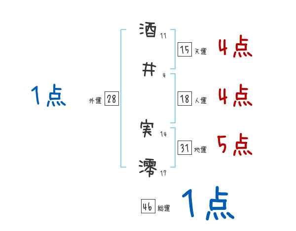 外運![]() | 酒井実澪さんの外運は28画の1つ星!家庭環境に注意。スポーツで活躍できる能力があるかも。 生活面を象徴する運勢です。外部から受ける影響力を表し、結婚運、家庭運や職場、環境への順応性を表します。 |