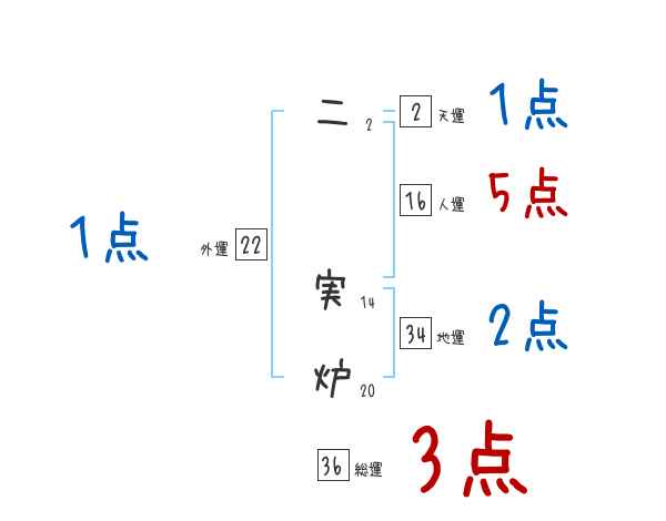 人運![]() | 二実炉さんの人運は16画の5つ星!人望が厚く大きく発展する。逆転成功が見える。 性格や才能などを表す2番目に重要な運勢です。人間関係や協調性、社会的な成功に影響します。主に20歳から50歳ぐらいまでの中年期の運勢を表します。 |
