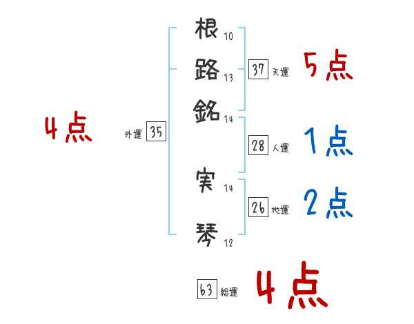 根路銘実琴さんの画数の鑑定結果