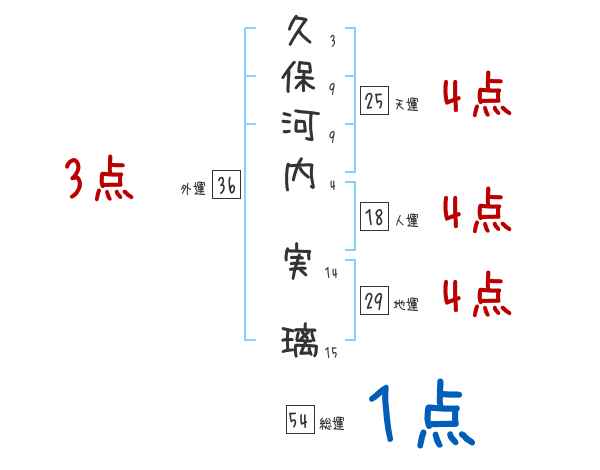外運![]() | 久保河内実璃さんの外運は36画の3つ星!先見性が豊かです。多少神経質で苦労することも。 生活面を象徴する運勢です。外部から受ける影響力を表し、結婚運、家庭運や職場、環境への順応性を表します。 |