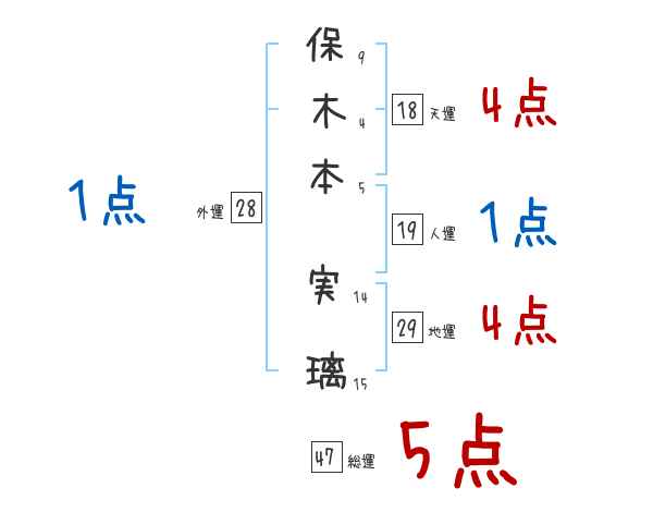 総運![]() | 保木本実璃さんの総運は47画の5つ星!実力が開花し発展する円満な人生。財に恵まれる。 あなたの人生を表す1番重要な運勢です。生涯を通じて影響する総合運となり、主に50歳以降の晩年期に影響を及ぼします。 |