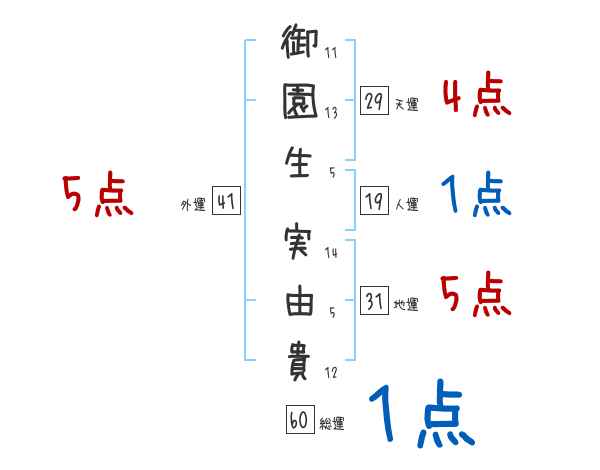 総運![]() | 御園生実由貴さんの総運は60画の1つ星!悲観的で迷いやすい。波乱が多く損をしないように。 あなたの人生を表す1番重要な運勢です。生涯を通じて影響する総合運となり、主に50歳以降の晩年期に影響を及ぼします。 |