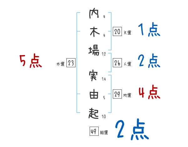 総運![]() | 内木場実由起さんの総運は49画の2つ星!不安定な性格で明暗がある人生。周りの人には支援されやすい。 あなたの人生を表す1番重要な運勢です。生涯を通じて影響する総合運となり、主に50歳以降の晩年期に影響を及ぼします。 |