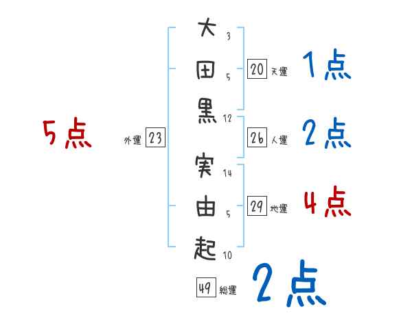 大田黒実由起さんの画数の鑑定結果