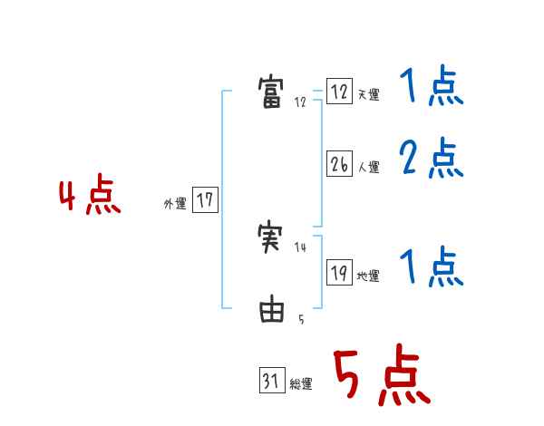 富実由さんの画数の鑑定結果
