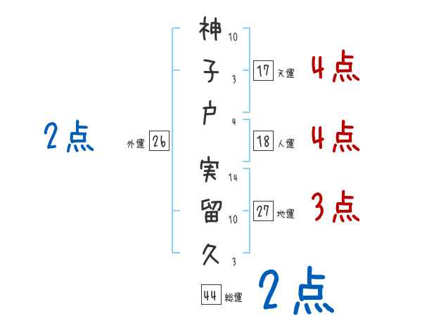 総運![]() | 神子戸実留久さんの総運は44画の2つ星!誠実で慎重な性格。物事を考えすぎないように注意しましょう。 あなたの人生を表す1番重要な運勢です。生涯を通じて影響する総合運となり、主に50歳以降の晩年期に影響を及ぼします。 |