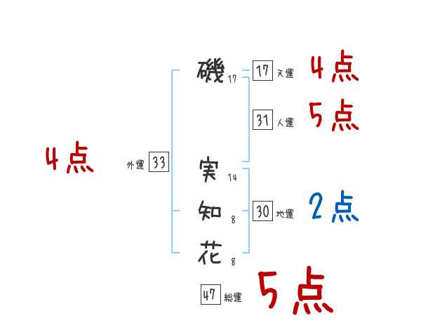 磯実知花さんの画数の鑑定結果