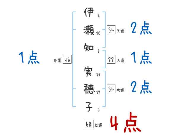 人運![]() | 伊瀬知実穂子さんの人運は22画の1つ星!努力することが苦手ないっぽう手先が器用。芸術性にも優れる。 性格や才能などを表す2番目に重要な運勢です。人間関係や協調性、社会的な成功に影響します。主に20歳から50歳ぐらいまでの中年期の運勢を表します。 |
