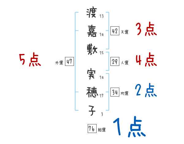 渡嘉敷実穂子さんの画数の鑑定結果