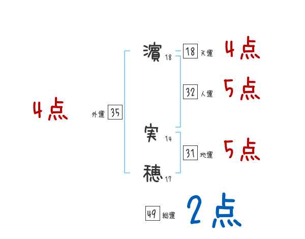 天運![]() | 濵実穂さんの天運は18画の4つ星!情熱的で剛気。忍耐力があり信頼される。 家系が持つ宿命的な運勢を表します。祖先から受け継いだ苗字ですので自分の力が及びません。家柄を象徴します。 |