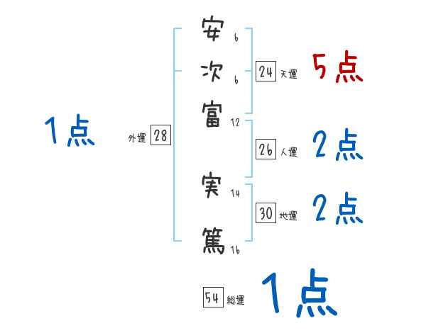安次富実篤さんの画数の鑑定結果