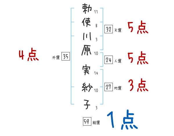 天運![]() | 勅使川原実紗子さんの天運は32画の5つ星!柔軟性があり成功する。チャンスが多く金運が良い。 家系が持つ宿命的な運勢を表します。祖先から受け継いだ苗字ですので自分の力が及びません。家柄を象徴します。 |