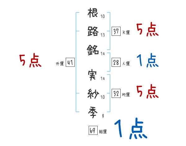 根路銘実紗季さんの画数の鑑定結果