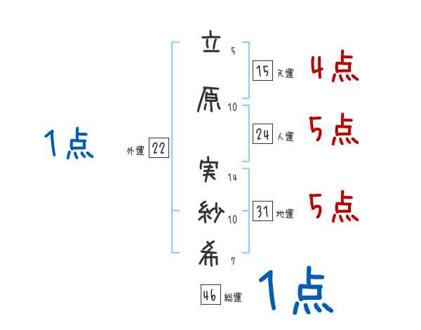 立原実紗希さんの画数の鑑定結果
