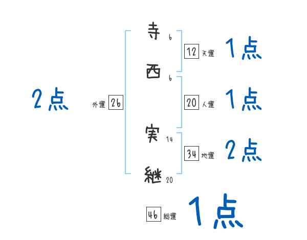 寺西実継さんの画数の鑑定結果