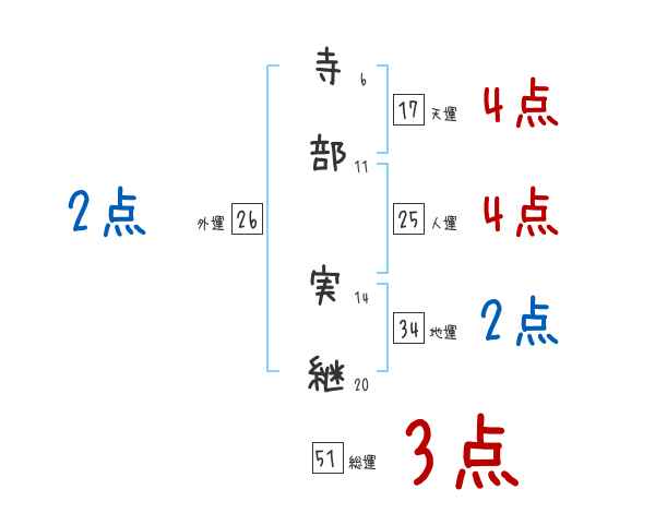 寺部実継さんの画数の鑑定結果