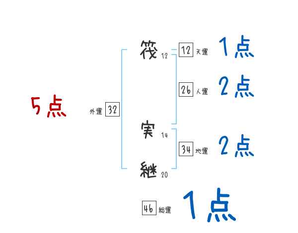筏実継さんの画数の鑑定結果