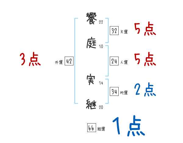 饗庭実継さんの画数の鑑定結果