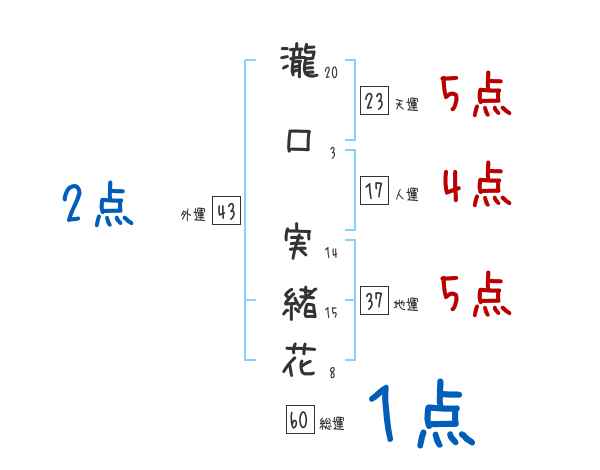 瀧口実緒花さんの画数の鑑定結果