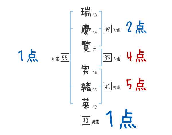 瑞慶覧実緒菜さんの画数の鑑定結果