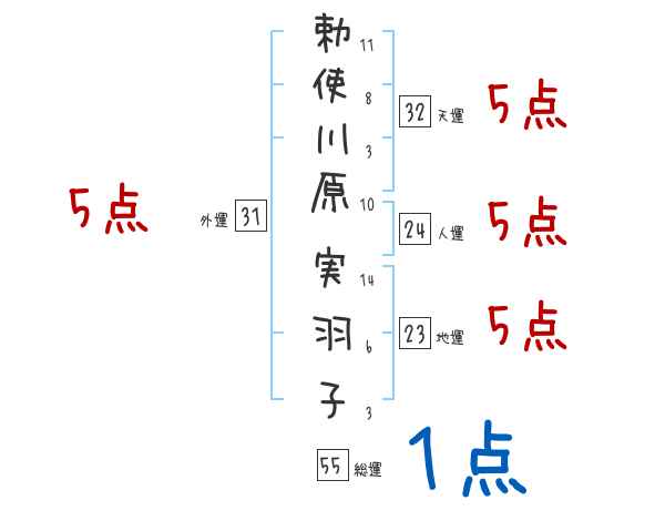 天運![]() | 勅使川原実羽子さんの天運は32画の5つ星!柔軟性があり成功する。チャンスが多く金運が良い。 家系が持つ宿命的な運勢を表します。祖先から受け継いだ苗字ですので自分の力が及びません。家柄を象徴します。 |