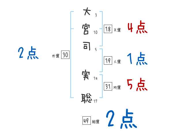 大宮司実聡さんの画数の鑑定結果
