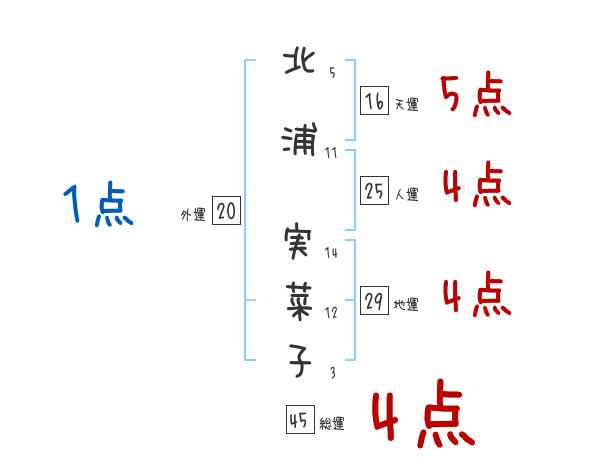 総運![]() | 北浦実菜子さんの総運は45画の4つ星!もくもくと物事を進め達成する。地味な努力家。 あなたの人生を表す1番重要な運勢です。生涯を通じて影響する総合運となり、主に50歳以降の晩年期に影響を及ぼします。 |
