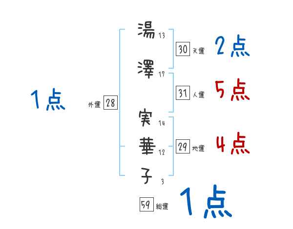 湯澤実華子さんの画数の鑑定結果