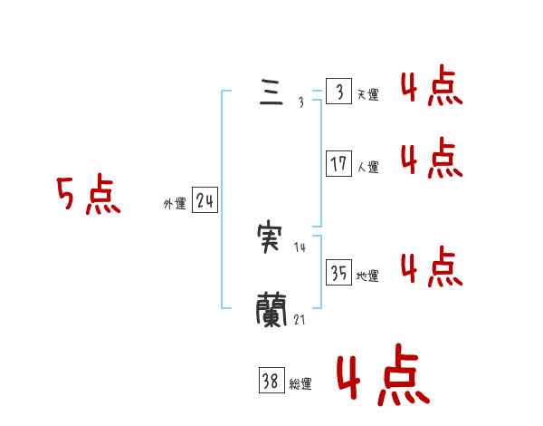 三実蘭さんの画数の鑑定結果