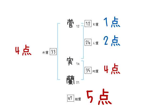 菅実蘭さんの画数の鑑定結果