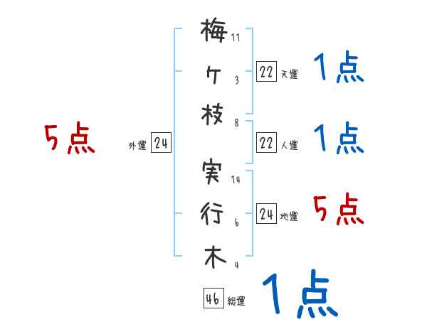 梅ヶ枝実行木さんの外運は24画の5つ星