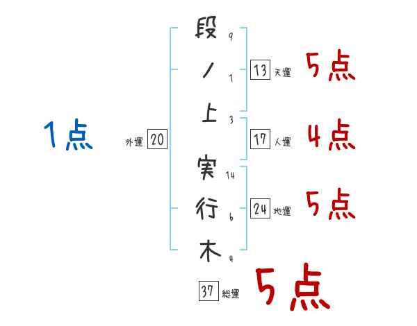 段ノ上実行木さんの画数の鑑定結果