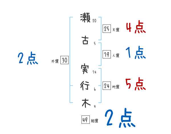 天運![]() | 瀬古実行木さんの天運は25画の4つ星!個性があり才能があふれる。強運の持ち主で発展する。 家系が持つ宿命的な運勢を表します。祖先から受け継いだ苗字ですので自分の力が及びません。家柄を象徴します。 |
