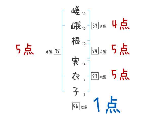 嵯峨根実衣子さんの画数の鑑定結果