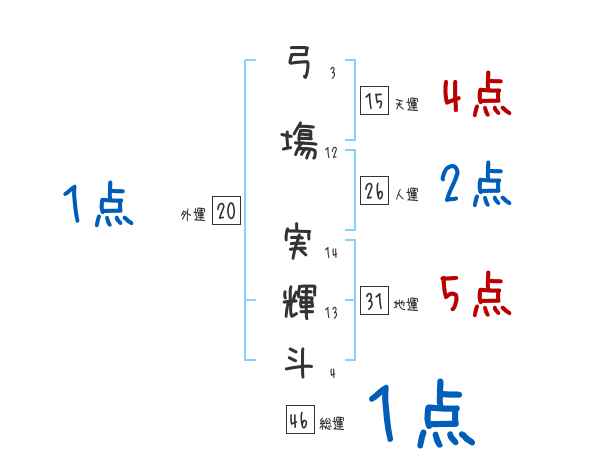 弓塲実輝斗さんの画数の鑑定結果
