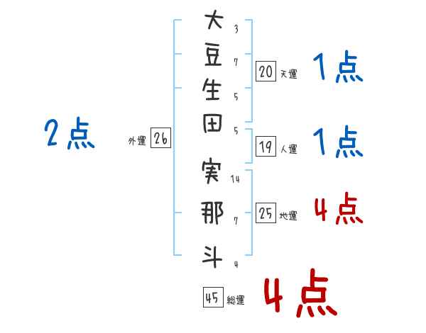 家系が持つ宿命的な運勢を表します。祖先から受け継いだ苗字ですので自分の力が及びません。家柄を象徴します。