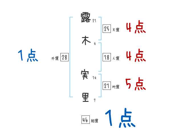 天運![]() | 露木実里さんの天運は25画の4つ星!個性があり才能があふれる。強運の持ち主で発展する。 家系が持つ宿命的な運勢を表します。祖先から受け継いだ苗字ですので自分の力が及びません。家柄を象徴します。 |