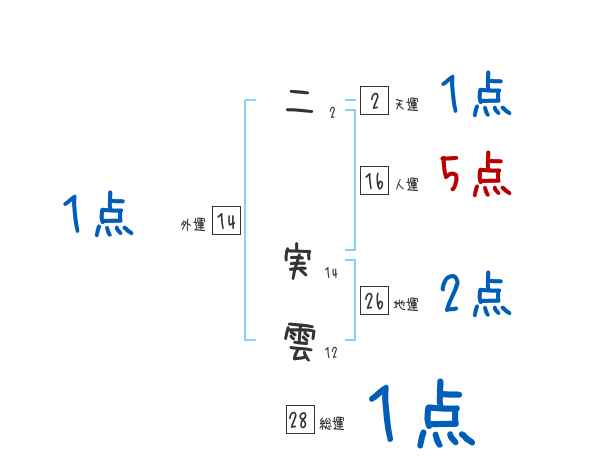 二実雲さんの画数の鑑定結果