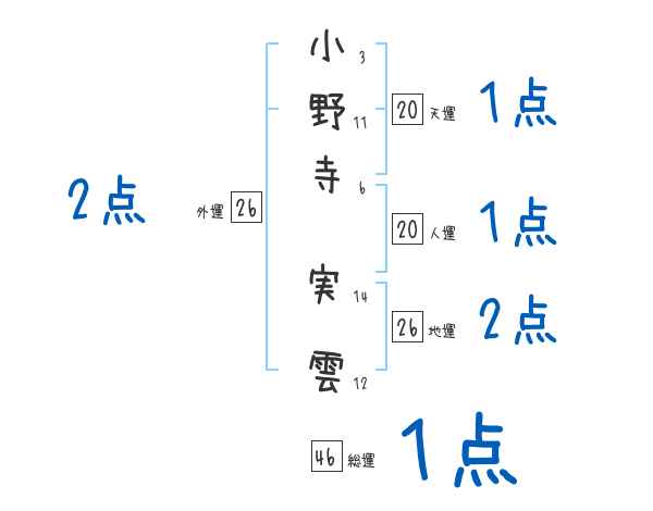 小野寺実雲さんの画数の鑑定結果