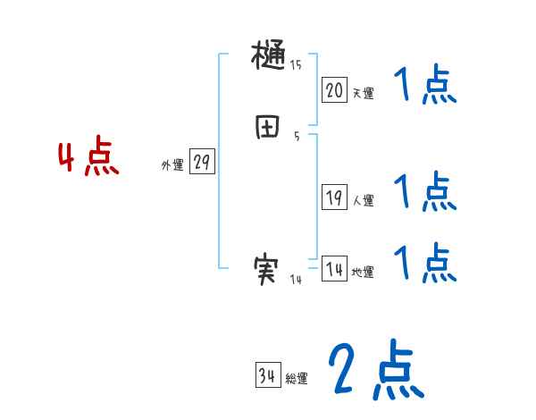外運![]() | 樋田実さんの外運は29画の4つ星!完全主義で才能がある。厳格な心の持ち主。 生活面を象徴する運勢です。外部から受ける影響力を表し、結婚運、家庭運や職場、環境への順応性を表します。 |