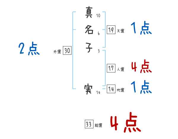 真名子実さんの画数の鑑定結果